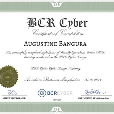 Thanks to BCR Cyber for a well designed training course, equipped with exceptional instructors and great team members.