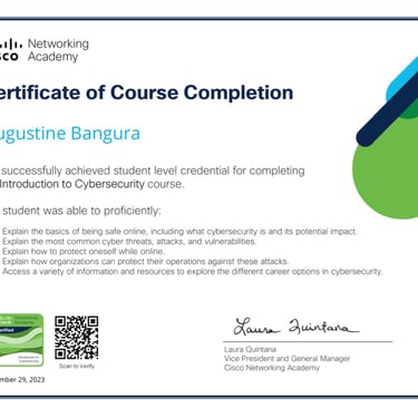 Augustine is a dedicated IT professional with expertise in IT Support, network Infrastructure, Graphic design, and Web development. He is committed to enhancing organizational productivity through innovative solutions, backed by extensive project management experience. His background in Physics, coupled with professional certifications and a strong foundation in cybersecurity and network security, makes him a valuable asset in ensuring the security and efficiency of systems. From cable installations and network troubleshooting to multimedia project management, his diverse skillset positions him as a well-rounded professional ready for new challenges.